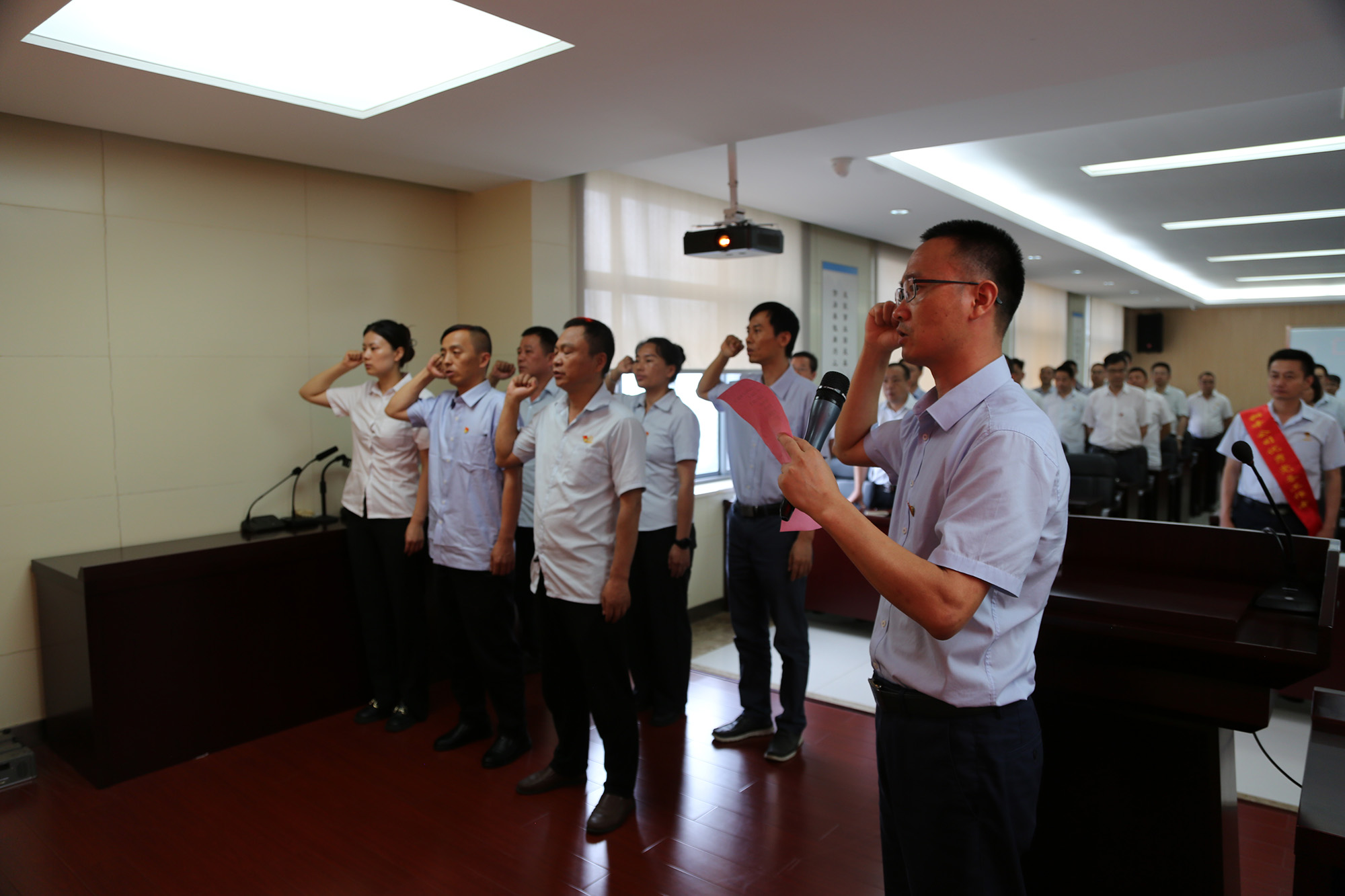 在首先進(jìn)行的新黨員入黨宣誓儀式上,黨委委員林政宣布新黨員名單,歡迎新黨員加入黨組織并向他們提出希望和要求。隨后,由黨委委員何曉明領(lǐng)誓,新黨員進(jìn)行入黨宣誓。在“兩優(yōu)一先”表彰環(huán)節(jié),公司黨委領(lǐng)導(dǎo)為受表彰對(duì)象頒發(fā)榮譽(yù)證書(shū),“兩優(yōu)一先”代表分別作先進(jìn)事跡報(bào)告。