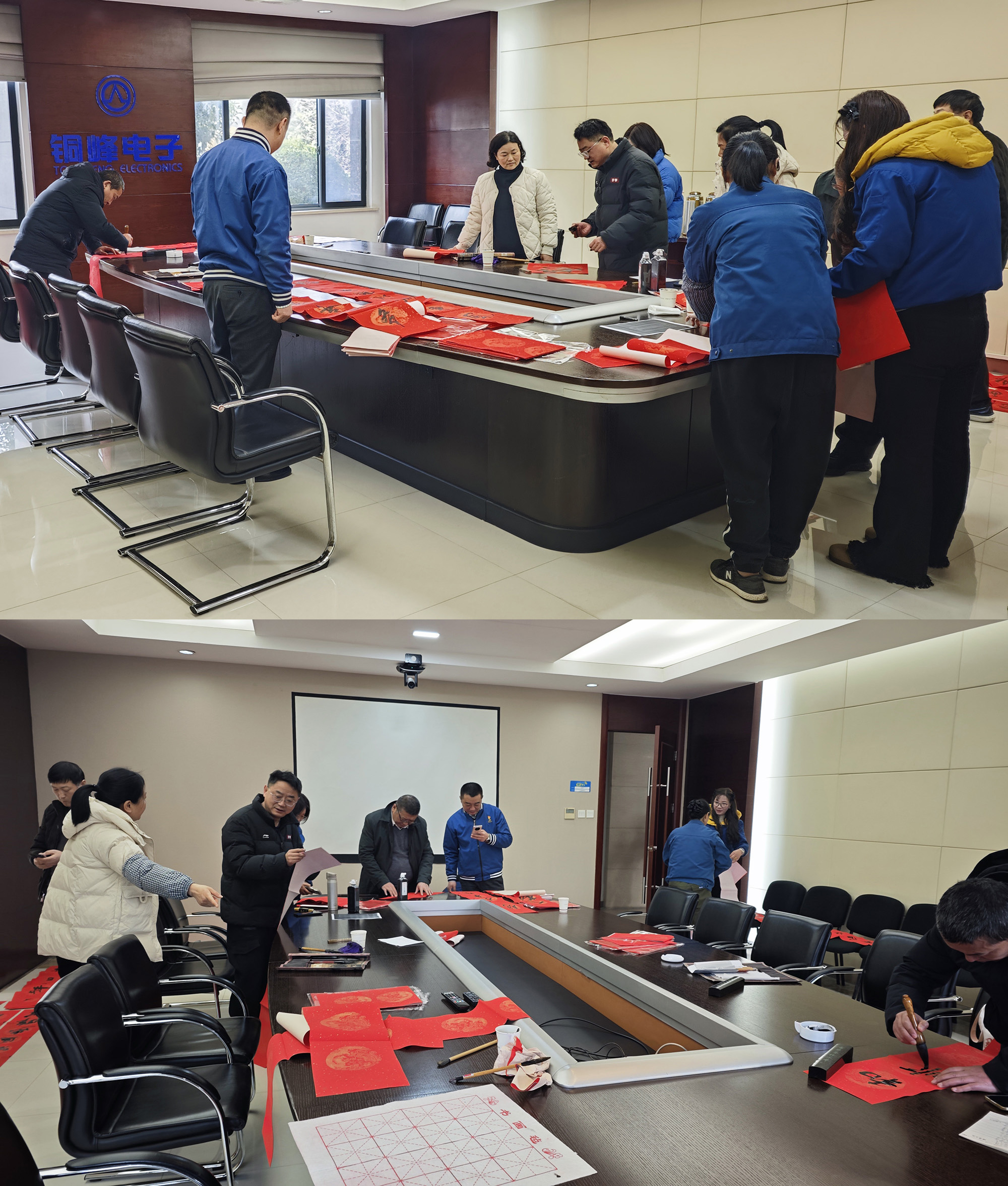 臘月二十四,在公司辦公樓一樓會(huì)議室,公司工會(huì)組織書(shū)法愛(ài)好者開(kāi)展“迎新春、送春聯(lián)”活動(dòng)?,F(xiàn)場(chǎng)暖意融融、墨香四溢,職工們挑選或訂制自己心儀的佳句,一副副飽含吉祥寓意的春聯(lián)、一張張充滿(mǎn)喜慶的“?!弊周S然于紅紙上,增添了濃濃年味。